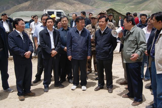 6月19日,中共中央政治局委員、國務院副總理、國務院抗震救災總指揮部總指揮回良玉率領相關部委領導,在青海省委書記強衛(wèi)、省長駱惠寧、副省長馬順青的陪同下,來到正在晝夜施工建設的青海物產(chǎn)玉樹建材物流集散中心,視察災后重建物資儲備情況和集散中心工程建設情況。集團總經(jīng)理王玉輝向中央領導和省領導詳細匯報了建材物流集散中心建設規(guī)模和鋼材、水泥、木材三大類物資收儲情況。同時表示,青海省物產(chǎn)集團總公司將一如既往,全力以赴支援玉樹災后重建,與各路建設大軍一道,為建設美好綠色新玉樹貢獻力量。聽完匯報,回良玉副總理非常高興,并做出重要指示,要做好統(tǒng)籌組織建材物資的采購和調(diào)運工作,努力保障供應,確保質(zhì)量,降低成本?;亓加窀笨偫砑笆☆I導與集團領導、工作人員合影留念。