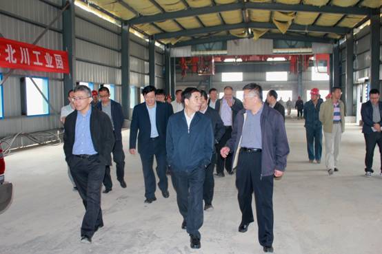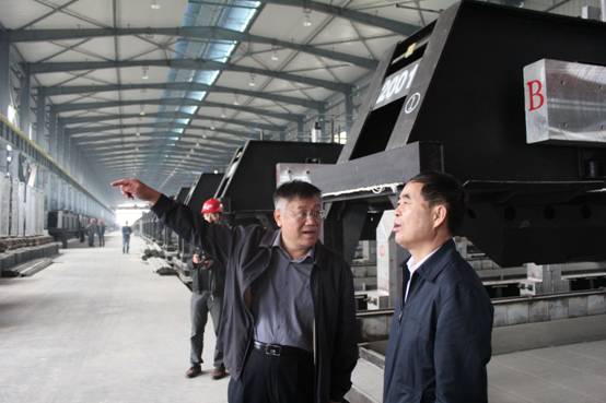 圖一:駱副省長(中)一行在集團王總(右一)等領(lǐng)導的陪同下實地來到生產(chǎn)車間視察